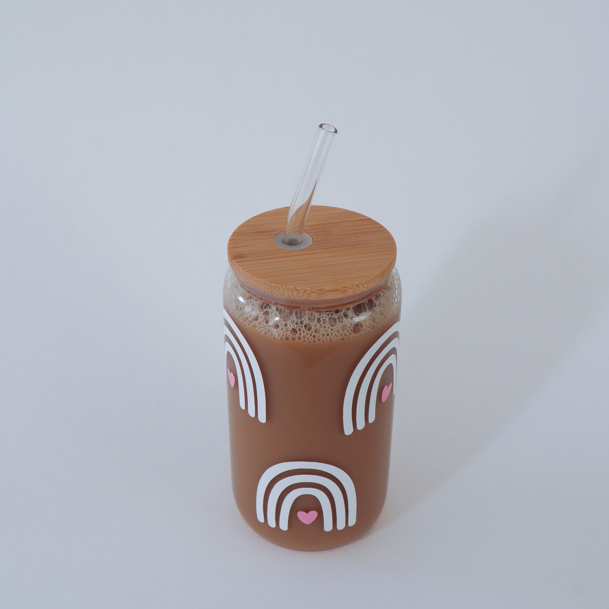 🌟 Perfectly sized for On-the-Go: The spill-resistant bamboo lid and sturdy glass construction make this cup ideal for your busy lifestyle, whether you're at work or on an outdoor adventure. The cup is 5.3” tall, 4” wide, and the glass straw is 8.5”.