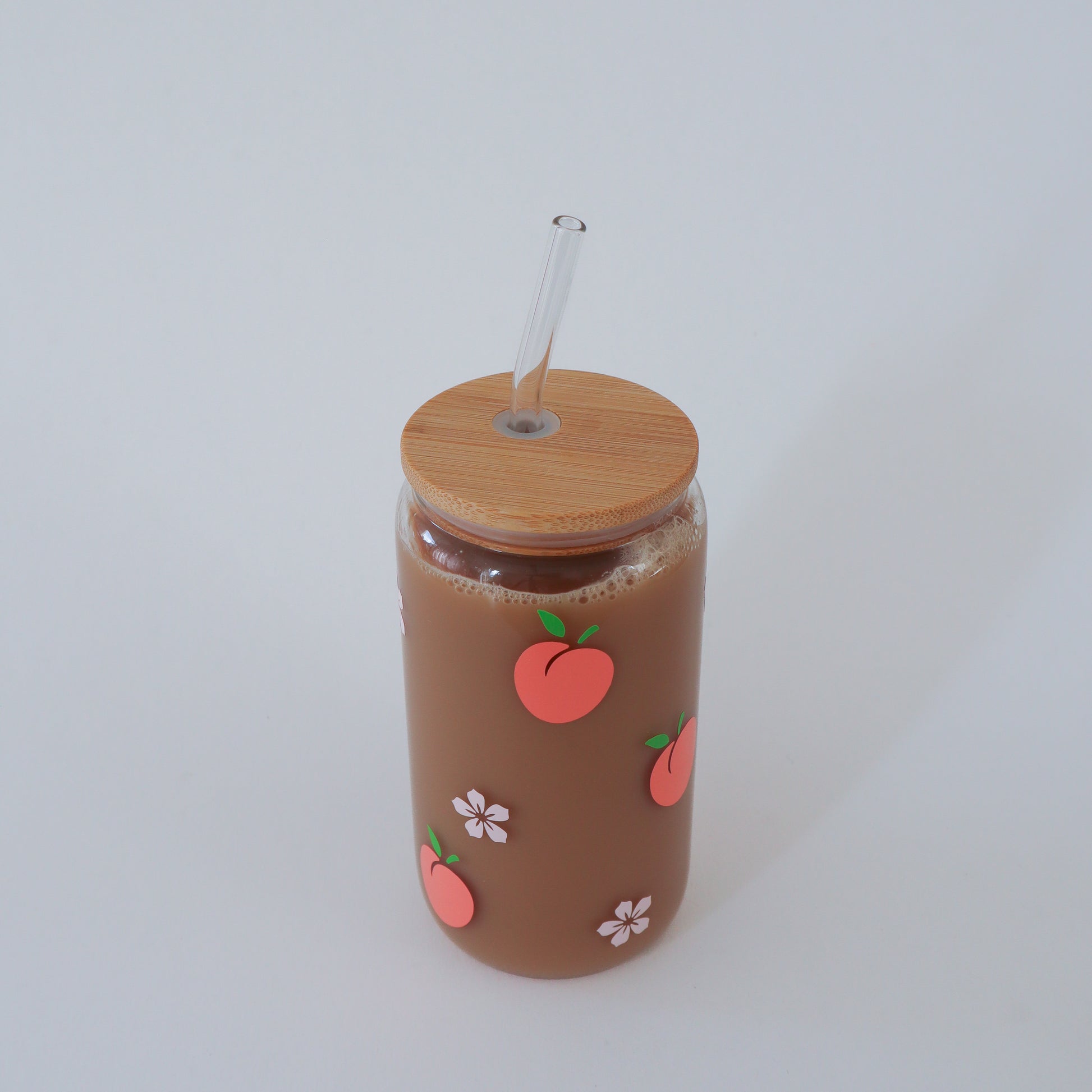 🌟 Perfectly sized for On-the-Go: The spill-resistant bamboo lid and sturdy glass construction make this cup ideal for your busy lifestyle, whether you're at work or on an outdoor adventure. The cup is 5.3” tall, 4” wide, and the glass straw is 8.5”.