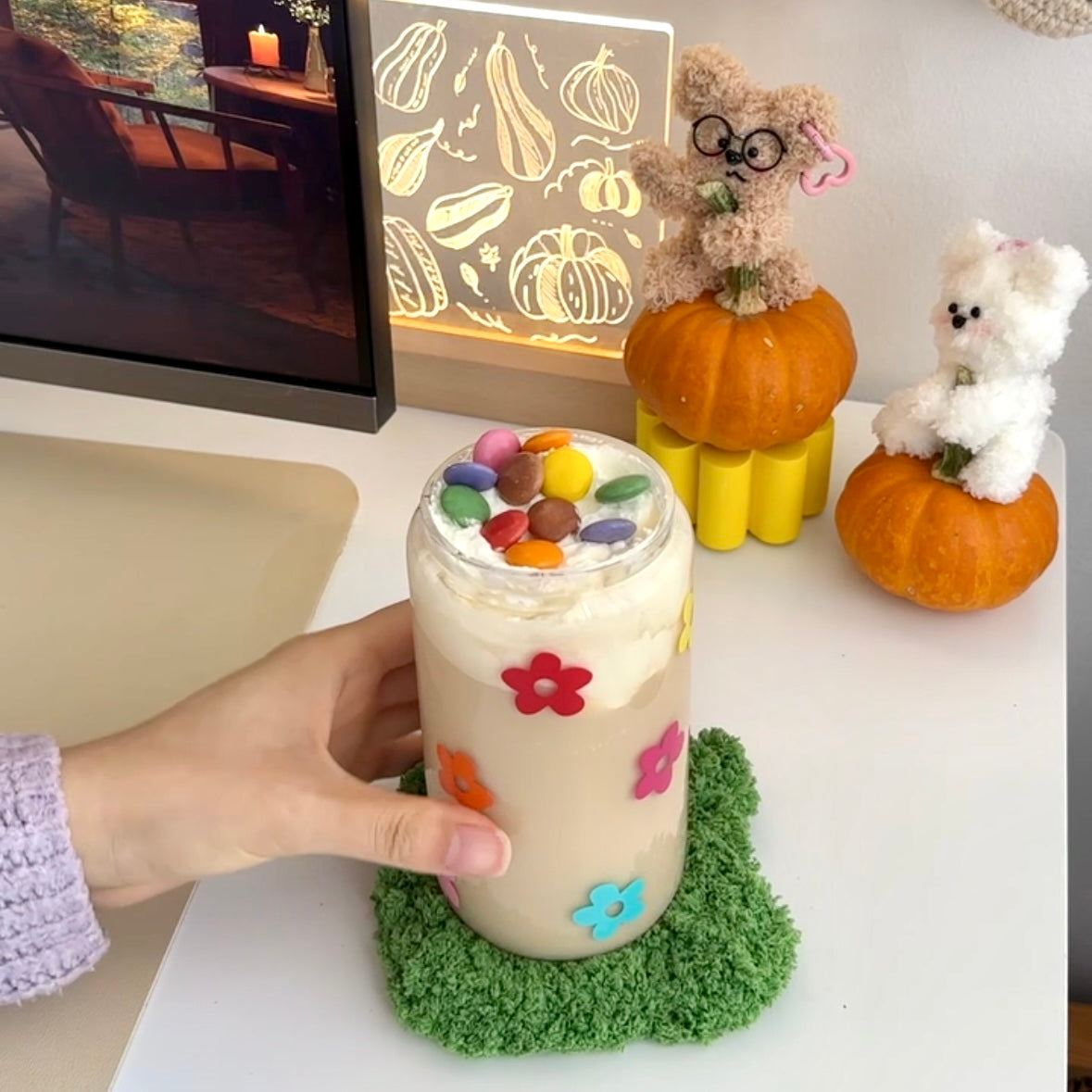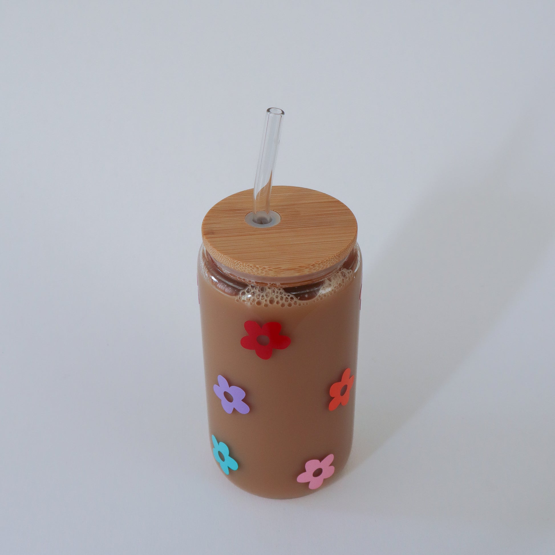 Add a pop of color to your iced coffee with our Retro Flowers Glass Beer Cup. Whether you're enjoying a...
